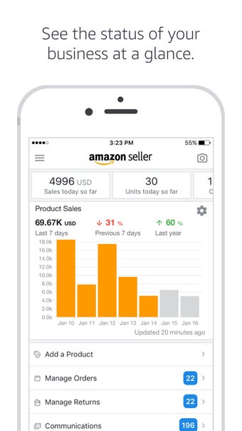 Amazon Selleres una aplicación gratuita para iPhone, que forma parte de la categoría 'Negocios y Productividad'.